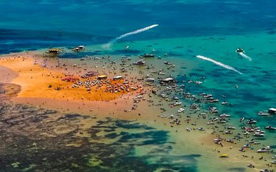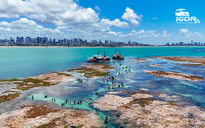 Você embarcará em um charmoso catamarã com destino à Ilha onde há formações, em maré baixa, de bancos de areia avermelhados cercados por arrecifes naturais
